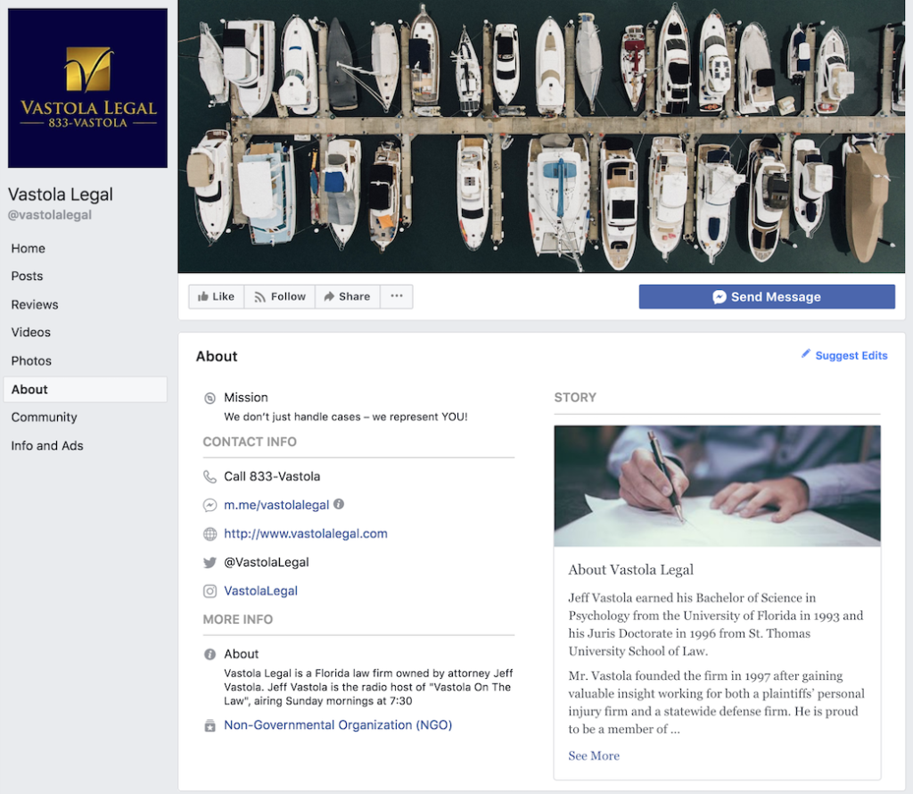 We had the pleasure of meeting Palm Beach Gardens local lawyer, Jeff Vastola, through a networking group. Jeff reached out to us to assist with building up his firms social media platforms such as Facebook, Twitter, and Instagram a long with helping optimize his current website.